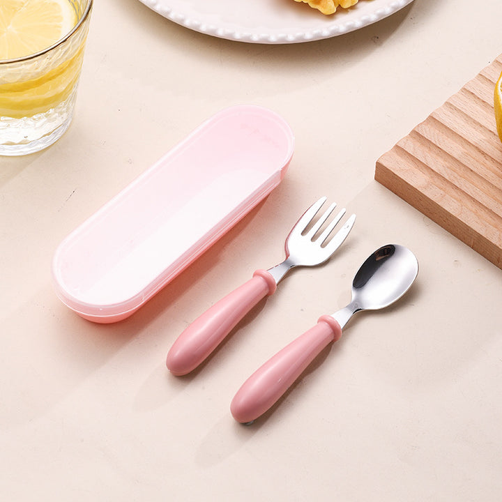 Cute baby portable knife, fork and spoon feeding training tableware set, stainless steel children's mouth-free tableware wholesale
