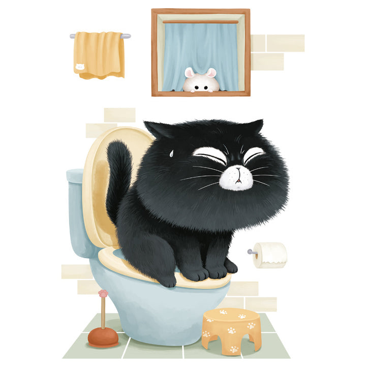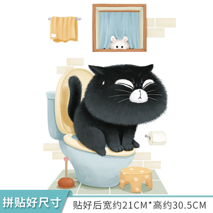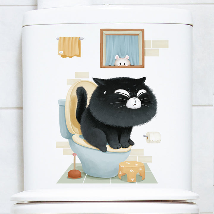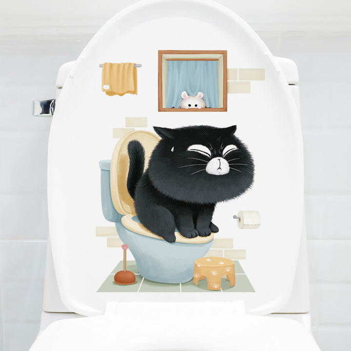Cute cartoon bathroom toilet sticker toilet toilet lid decorative sticker beautify PVC wall sticker poo black cat