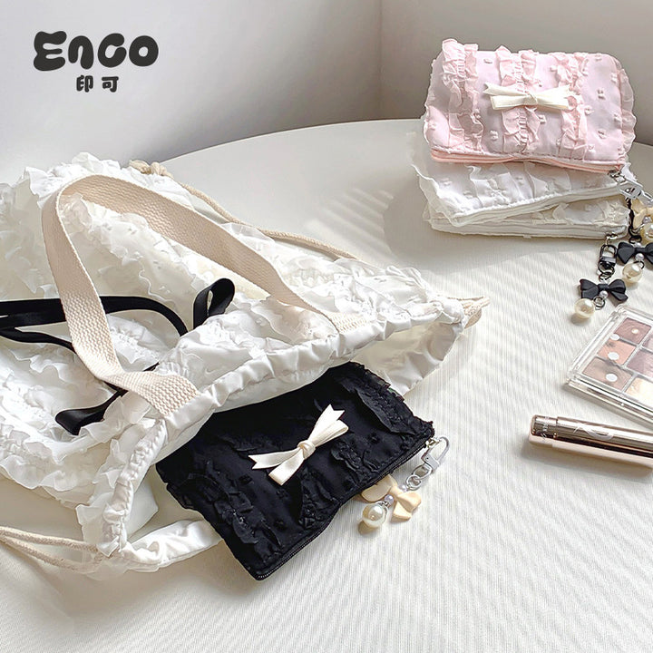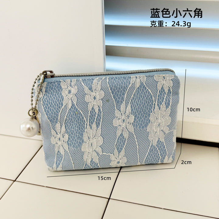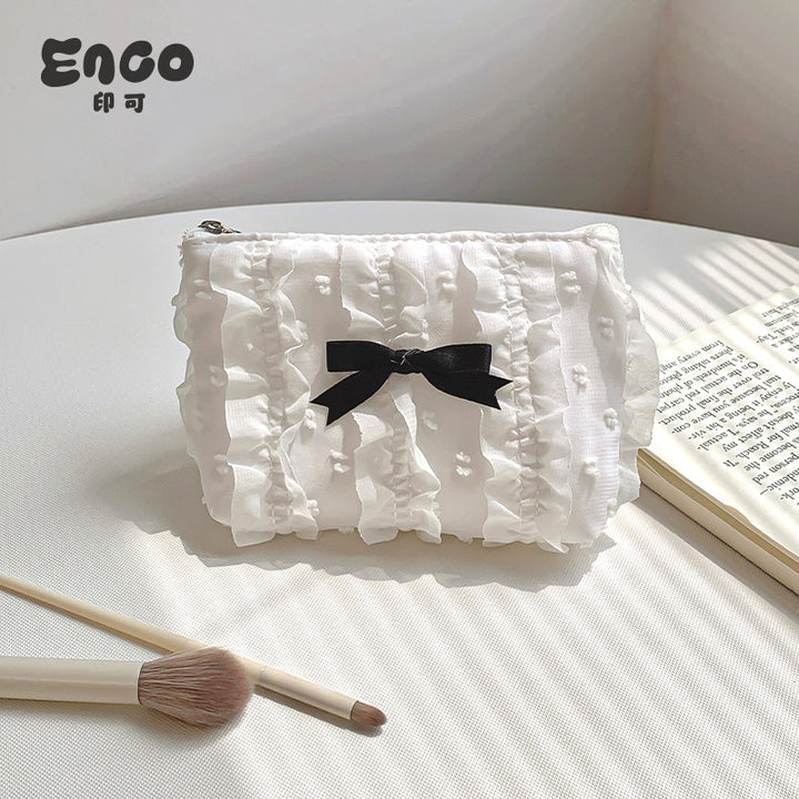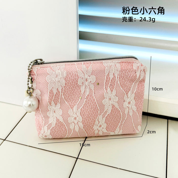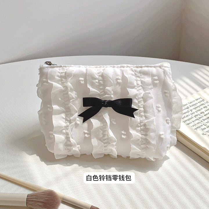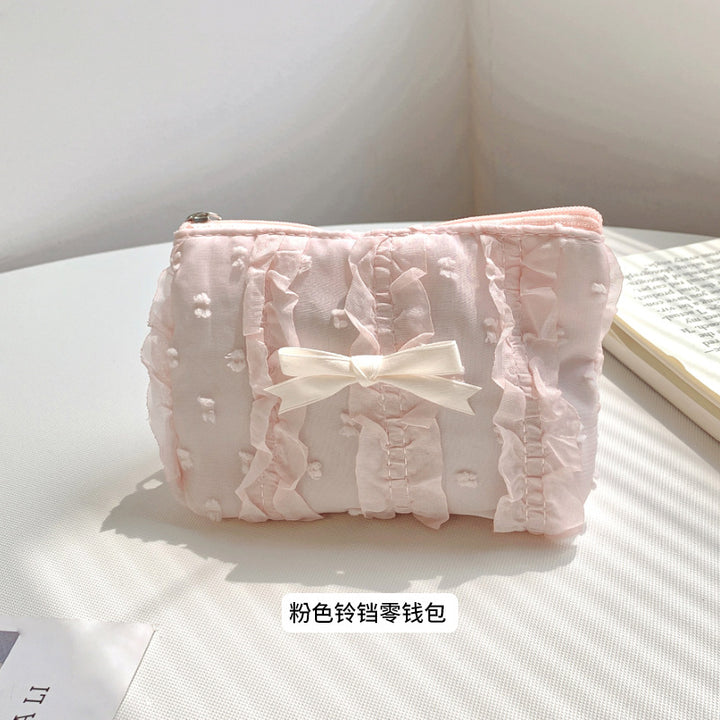 Cute cosmetic bag cosmetic bag new Korean version lace bow large capacity change bag clutch bag women's storage bag