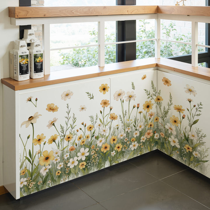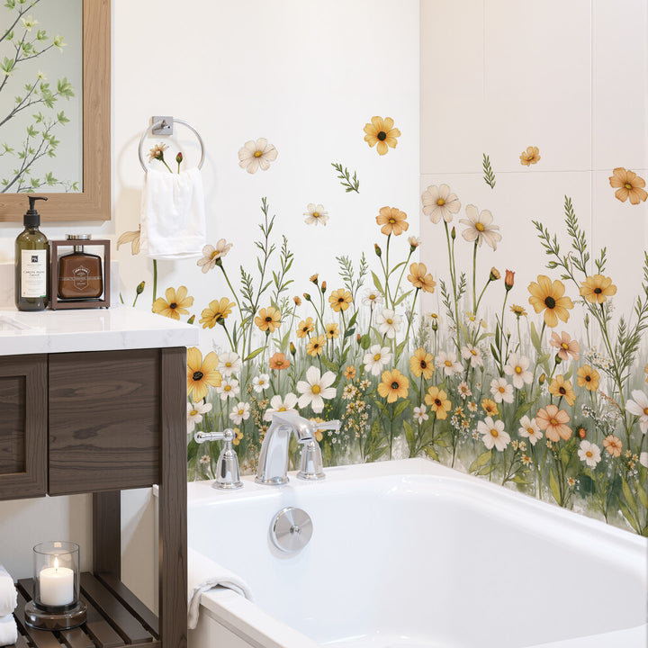 Daisy plant wall skirting decorative sticker hair removable butterfly flower background wall sticker 69140