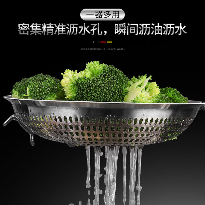 Daoqi 304 stainless steel colander household kitchen fried flat bottom filter spoon noodles dumplings hot pot fishing fence