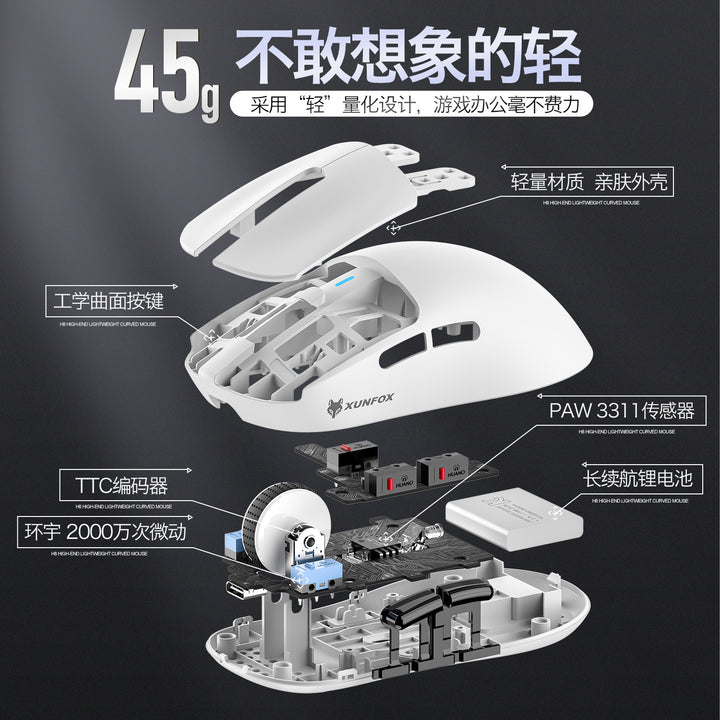 Dazzling Silver Fox H8 Three Mode Gaming Mouse - Black, Dazzling Silver Fox H8 Three Mode Gaming Mouse - White, Dazzling Silver Fox H8 three-mode game mouse - carbon brazing pattern |