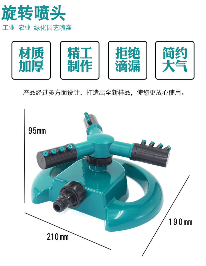 Deep digging gardening 360 degree rotating sprinkler, lawn irrigation nozzle, crescent large three-pronged sprinkler