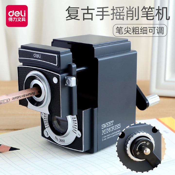 Deli 0668 retro pencil sharpener, pencil sharpener, large diameter adjustable fashion pencil sharpener, hand crank, pencil sharpener