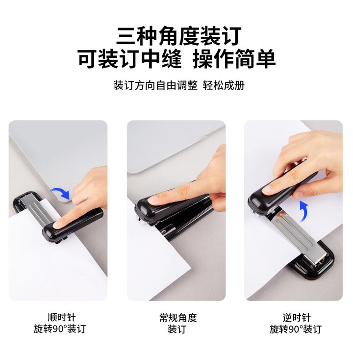Deli 0828 stapler 360 degree rotatable stapler student middle seam riding nail No. 12 stapler wholesale