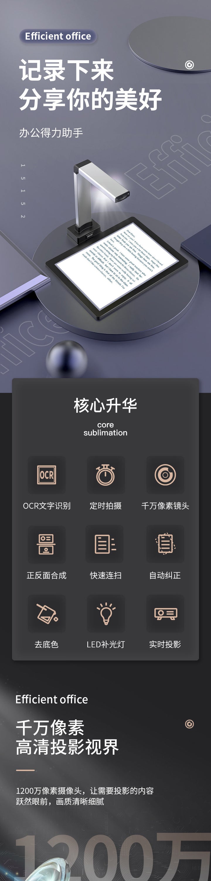 Deli 15152 high definition professional office teaching office collection certificate books scanner machine stationery