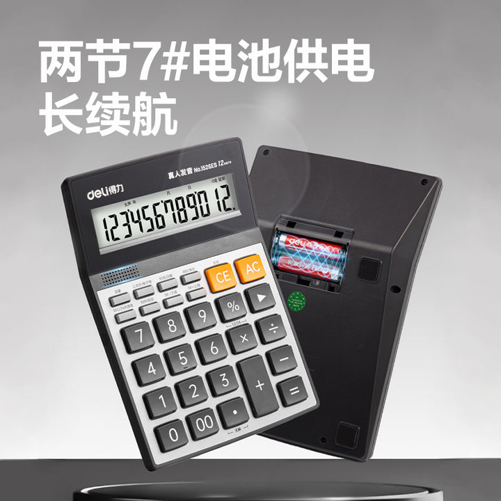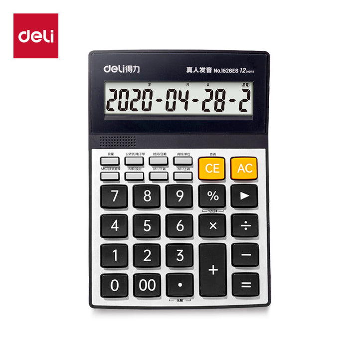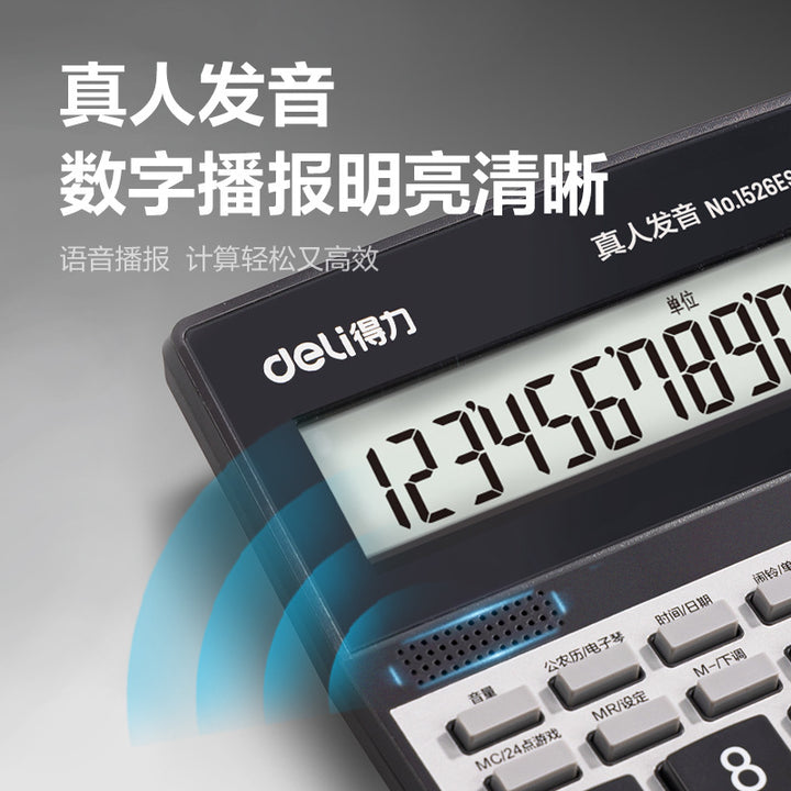 Deli 1526ES Voice Calculator Human Pronunciation Computer Large, Calculation Machine Large Buttons Large Screen