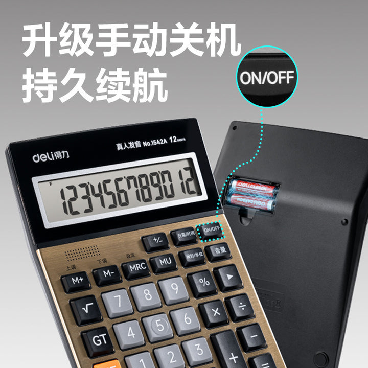 Deli 1542A large manual shutdown voice calculator large screen office finance real voice computer