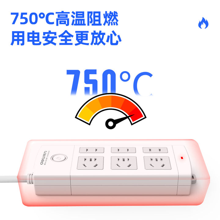 Deli 18208 power socket 2m socket plug-in board drag board 6 hole switching power strip wiring board socket