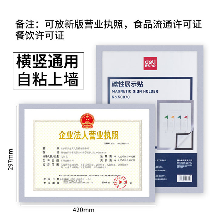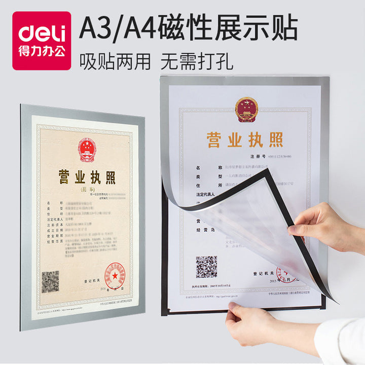 Deli 50870 magnetic display sticker nail-free A4 whiteboard sticker A3 magnetic sticker business license protective cover ID card