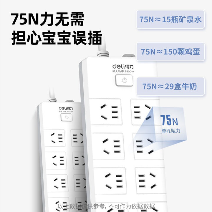 Deli 5m socket extension cable power strip wiring board drag board 3M socket household plug board with cable 2m