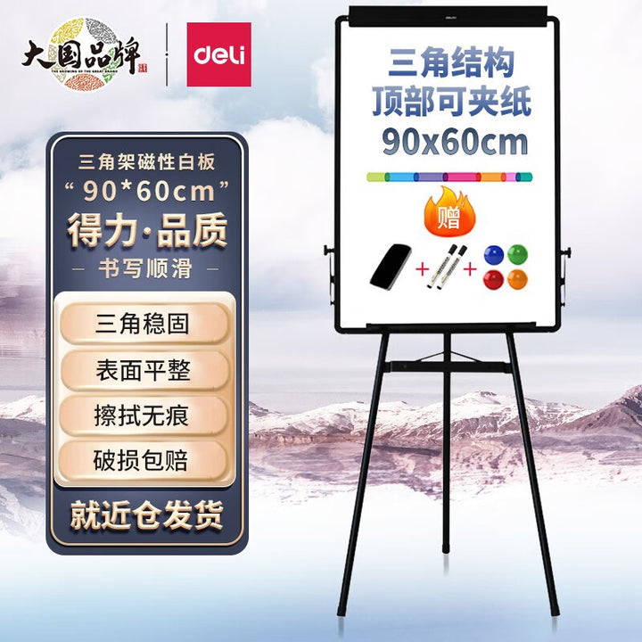 Deli 7892 Conference Whiteboard Display Board Tripod Writing Board Magnetic Fiber Whiteboard Demonstration Board 60 * 90cm