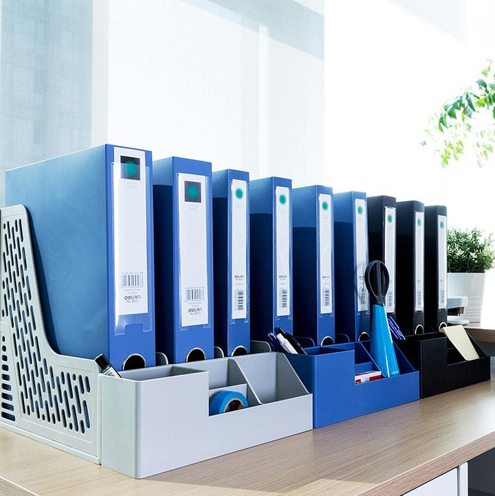 Deli 78980 data frame with pen holder, file holder, triple file rack, file column, file frame, storage basket
