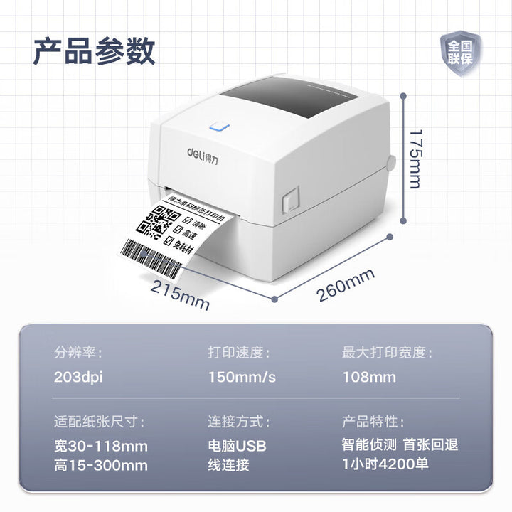Deli 888D thermal label printer electronic surface sheet self-adhesive barcode QR code sticky note paper printer