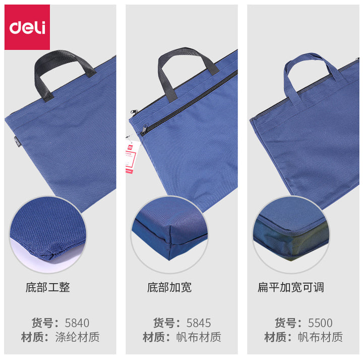 Deli Canvas Portable Document Bag Briefcase A4 Zipper Bag Conference Bag Information Bag Business Document Bag Computer Bag