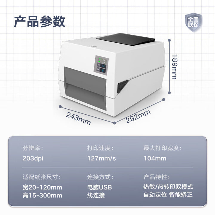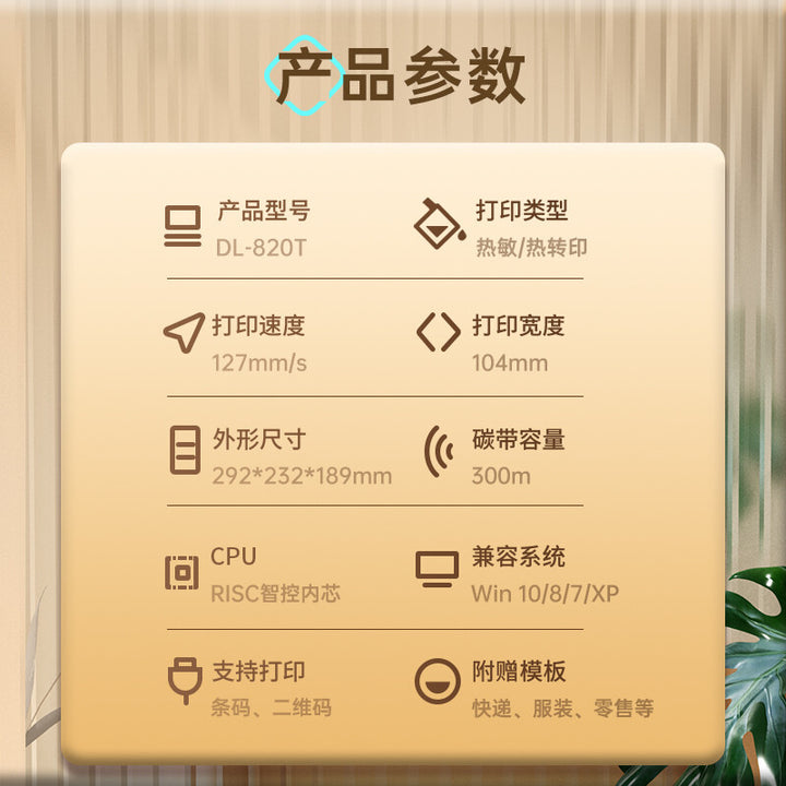 Deli DL-820T barcode printer electronic surface sheet coated paper label paper self-adhesive thermal transfer printer