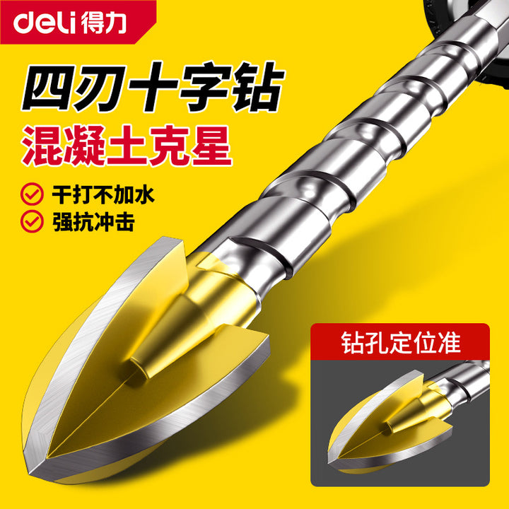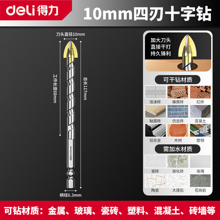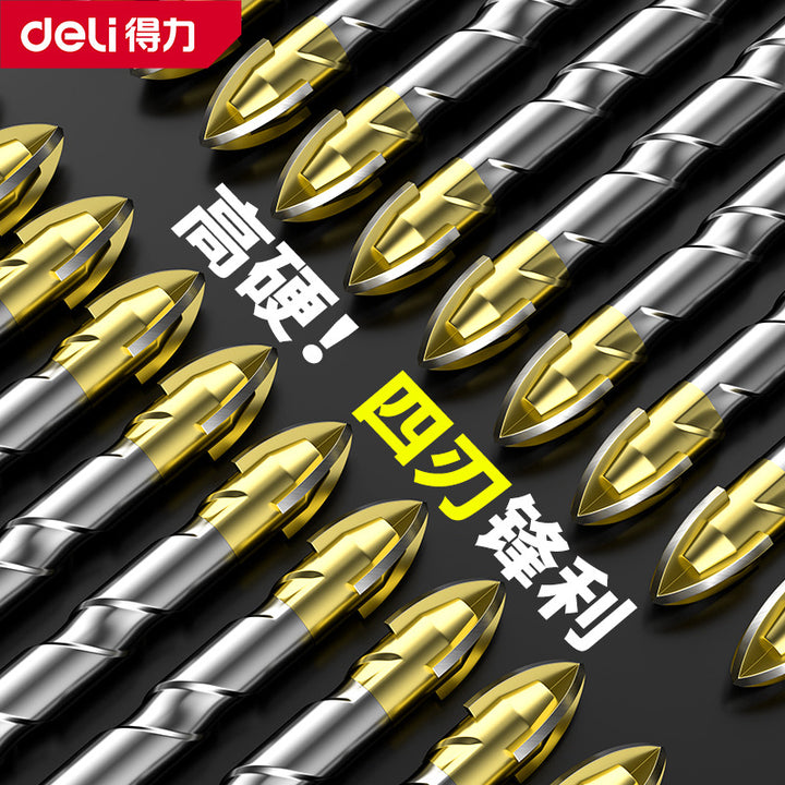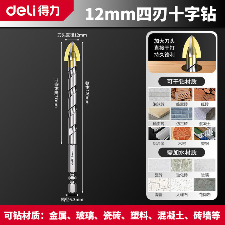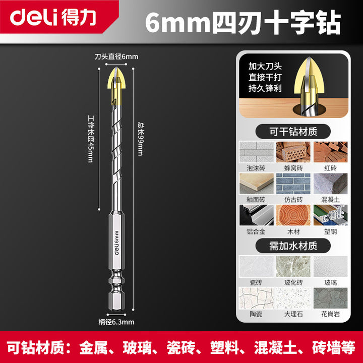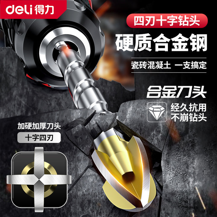 Deli four-edged drill tile drill bit drilling concrete all-ceramic glass special cross hexagonal tail drill tungsten steel impact