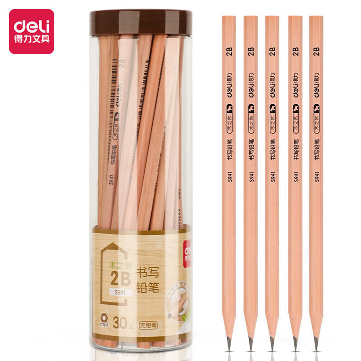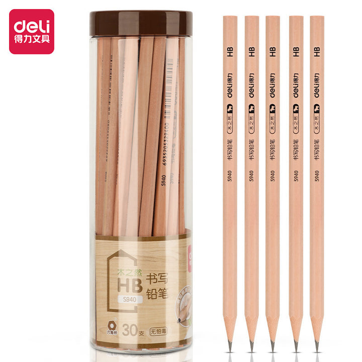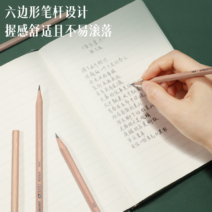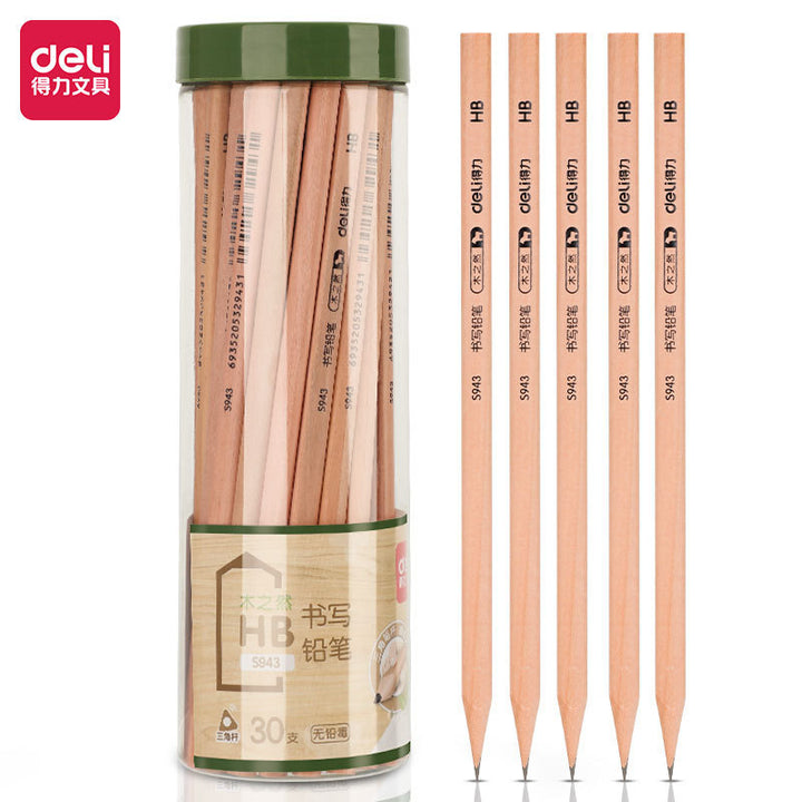 Deli Huagai wood pencil, student office triangular hexagonal log sketch painting wooden pen holder 30 pcs