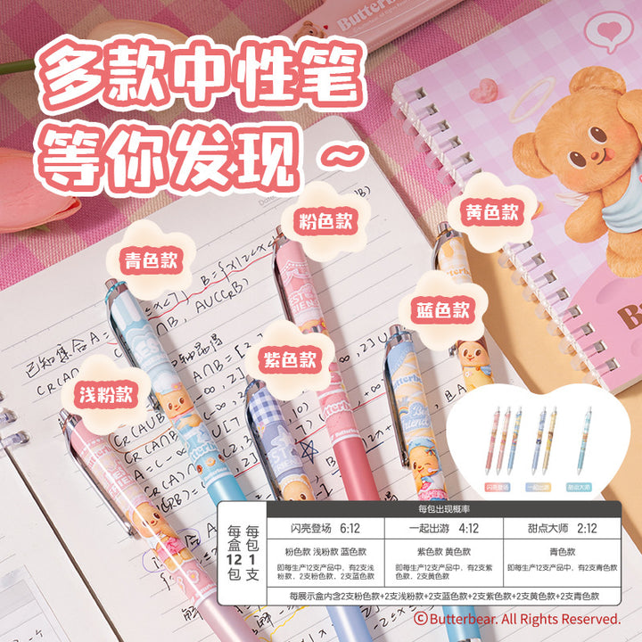 Deli HY022 Press Neutral Pen Blind Box Butter Bear Cute Student Exam Brush Question Pen 0.5 Black Flowerpen