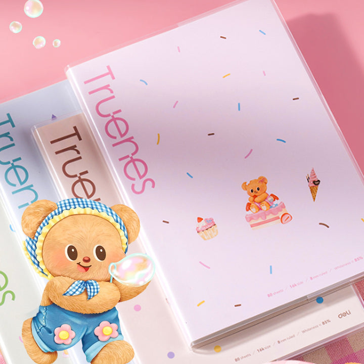 Deli HY237 Butter Bear Rubber Set Book-32K72 Rubber Set Book Notebook Exercise Book Diary Student