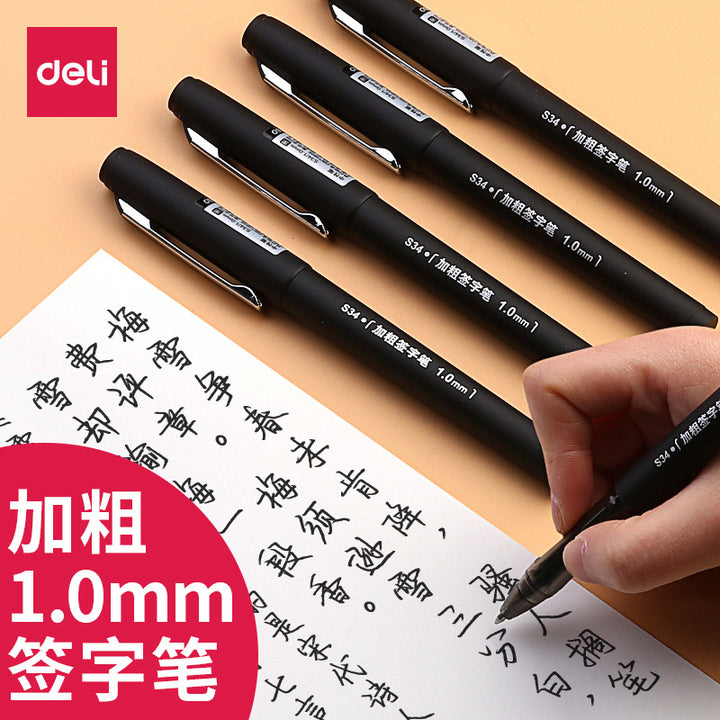 Deli S34 bold signature pen 1.0mm bullet head neutral pen matte rod black fountain pen office business pen