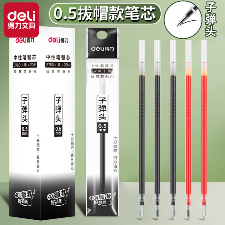 Deli S760 neutral refill 0.5mm bullet fountain pen black quick-drying carbon pen large-capacity refill replacement