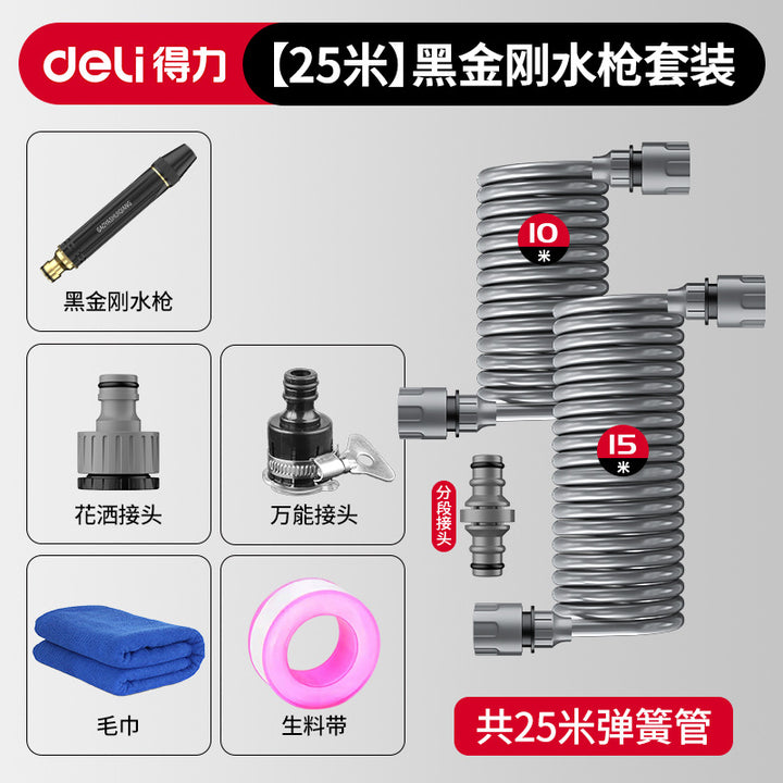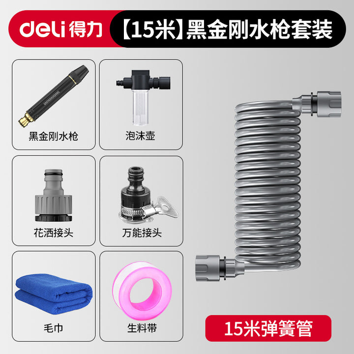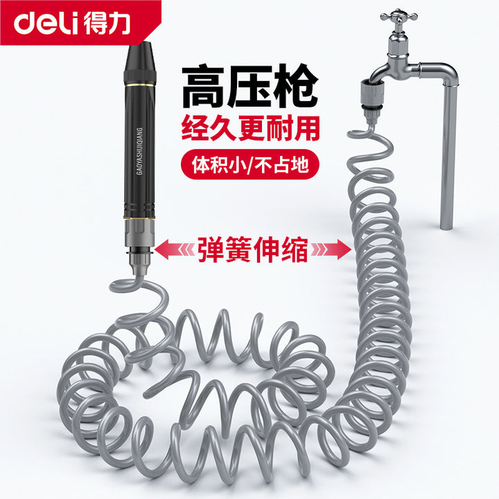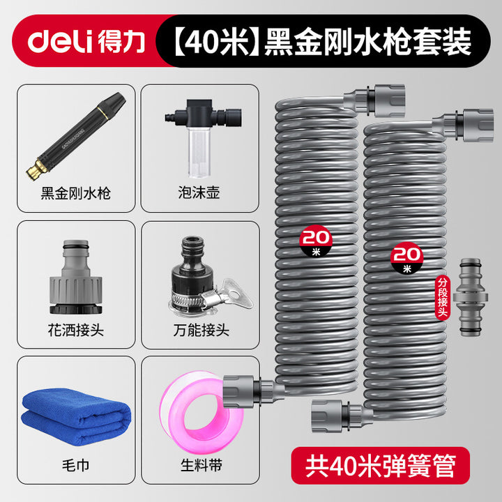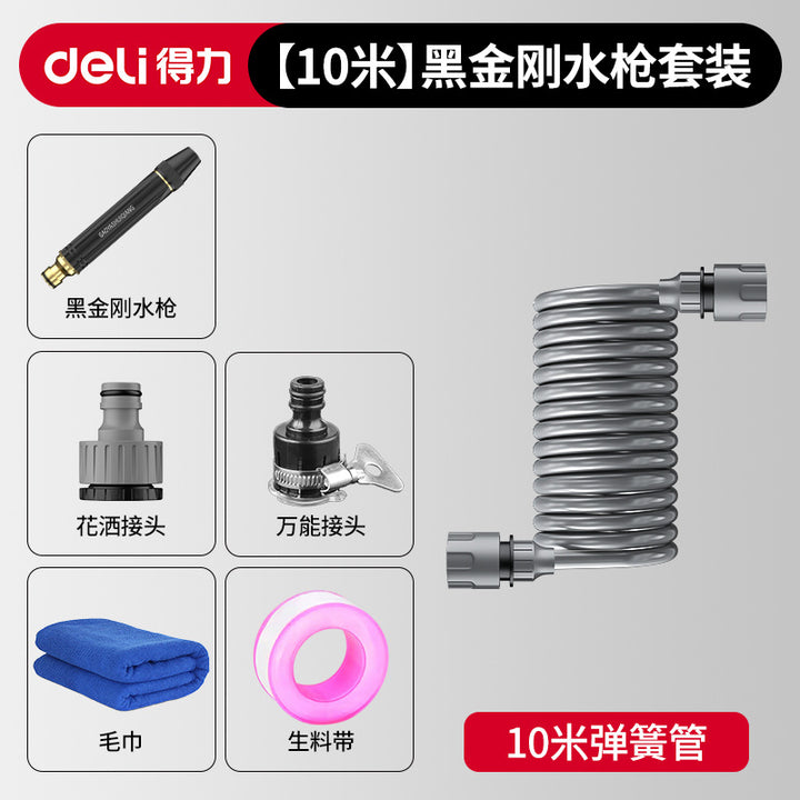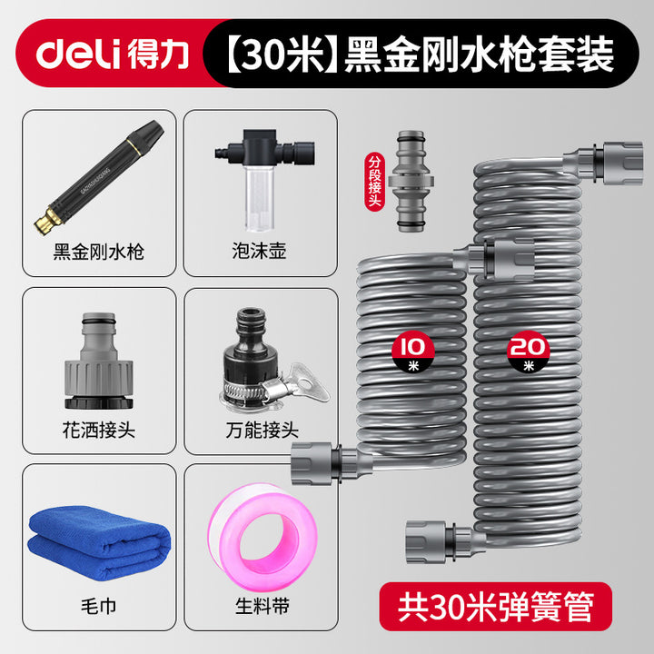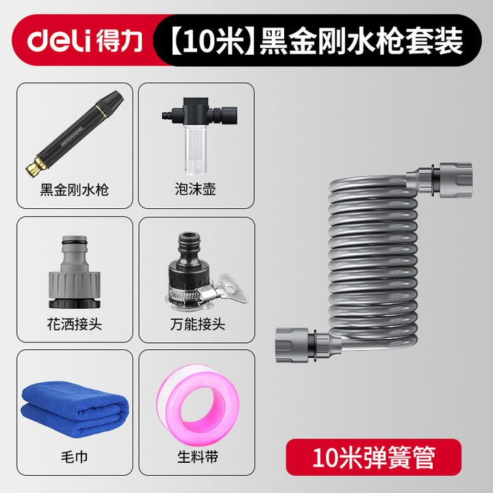 Deli spring tube black diamond high pressure water gun household tap water washing car wash b...