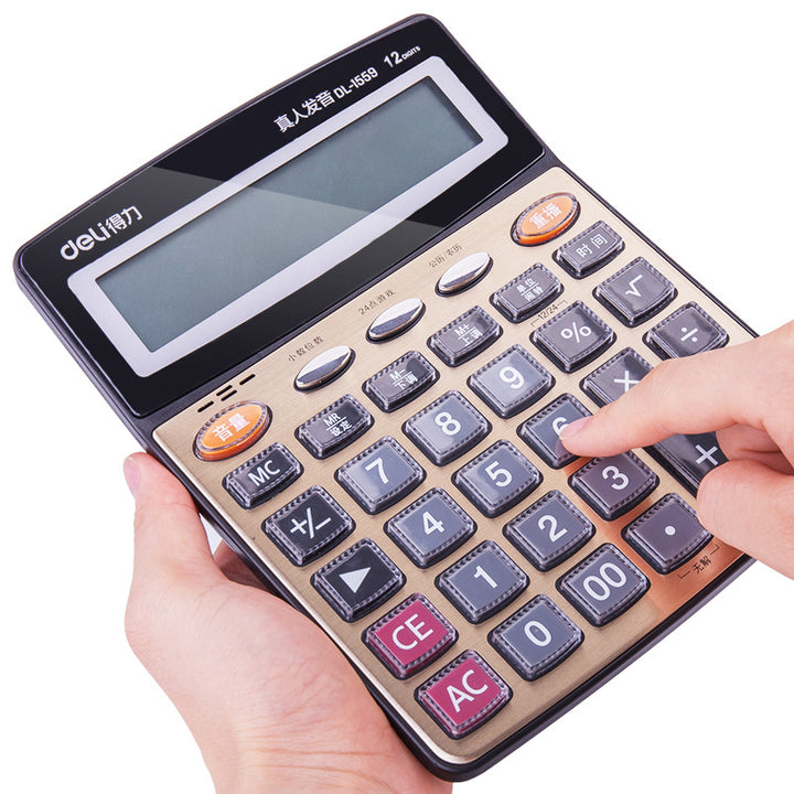 Deli Stationery 1559 Voice Calculator 12-digit Office Financial Calculator Voice Computer Wholesale