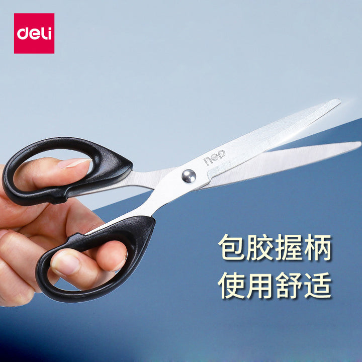 Deli Stationery 6009 Stainless Steel Scissors Large Office Paper Scissors 18cm Household Sewing Scissors Wholesale