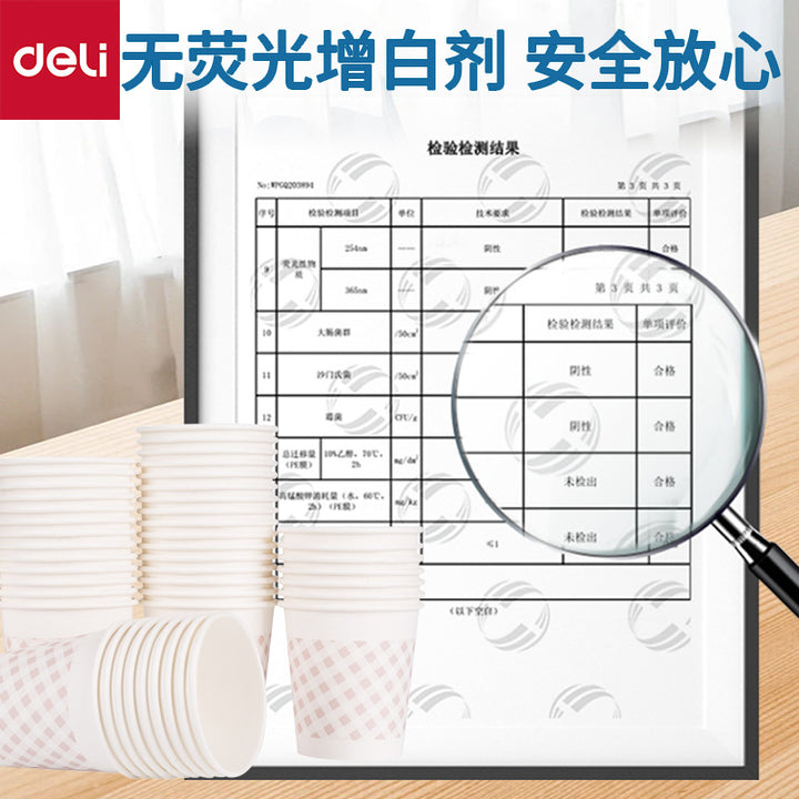 Deli Stationery 9569 Thickened Paper Cup 200ml Disposable Cup 50 Thickened Paper Cup Drinking Cup Wholesale