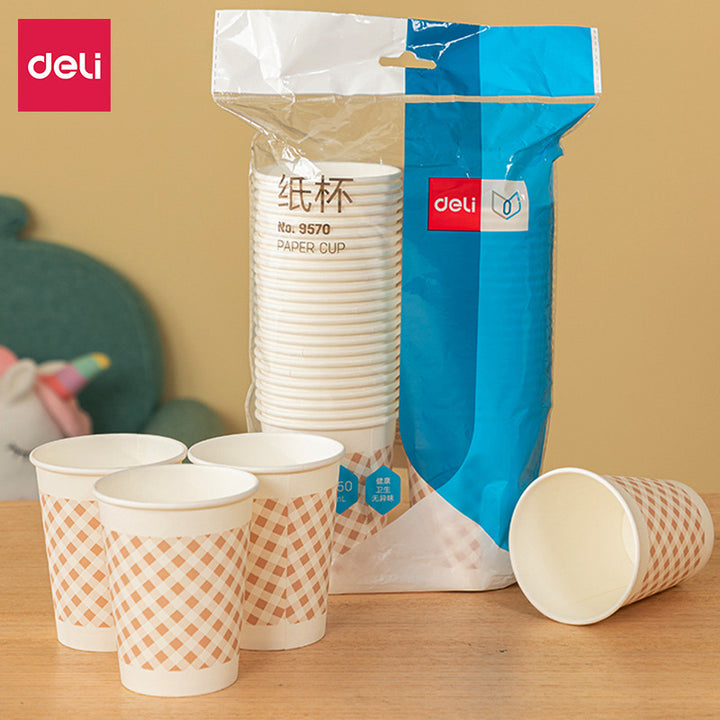 Deli Stationery 9570 Thickened Paper Cup 250ml Disposable Cup 50 Packs Drinking Cup Thickened Paper Cup