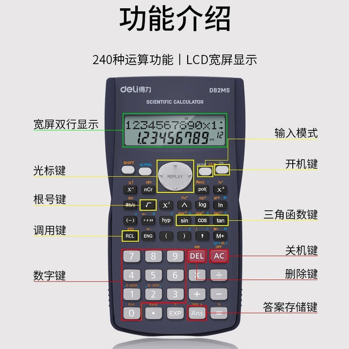 Deli Stationery D82MS Scientific Function Calculator Electronic Function Computer for Junior High School Students' Classroom Exams