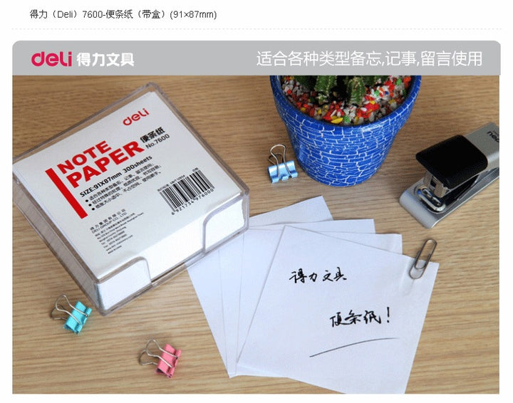 Deli sticky note paper 7600 with box sticky note paper/note white paper, easy to take, specification 91 * 87mm/300 sheets