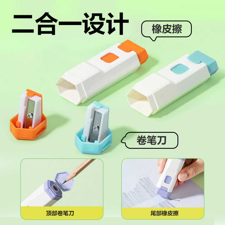 Deli VP211 two-in-one push-pull eraser pencil sharpener creative fashion student exam color eraser wholesale