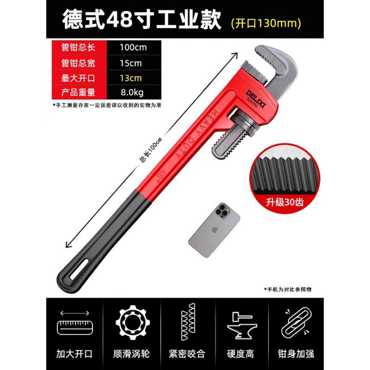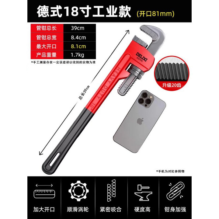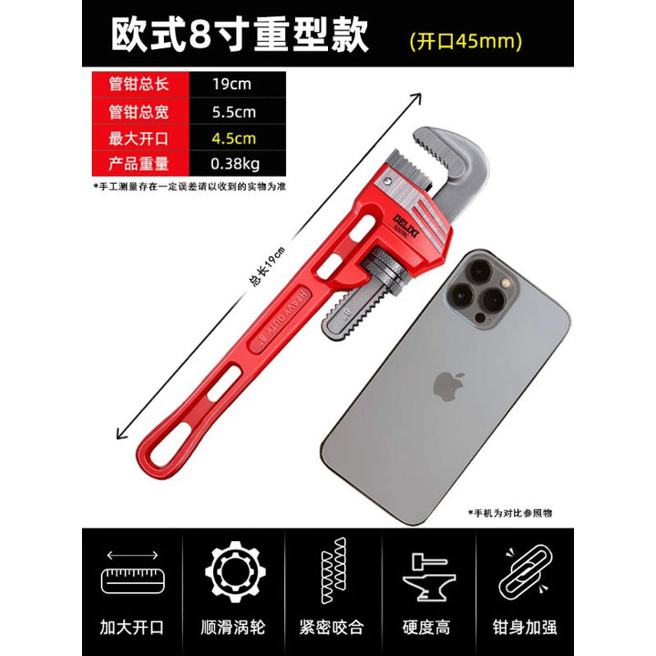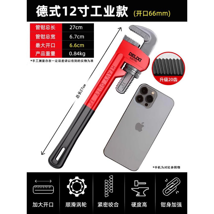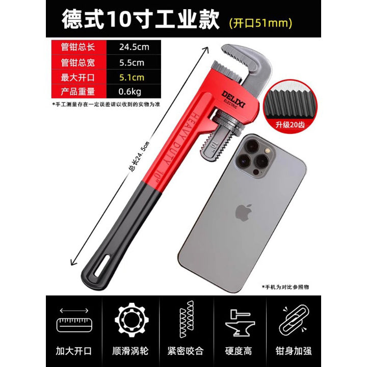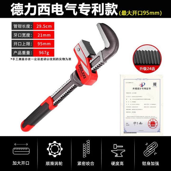 Delixi Electric Heavy Duty Pipe Clamp Wrench Multifunctional Household Large Diameter Water Pump Clamp Maintenance Universal Pipe Clamp