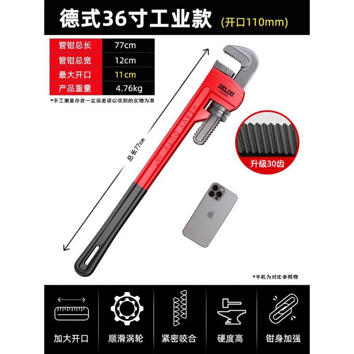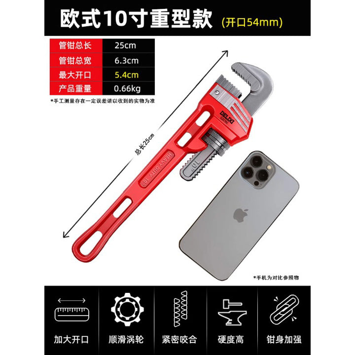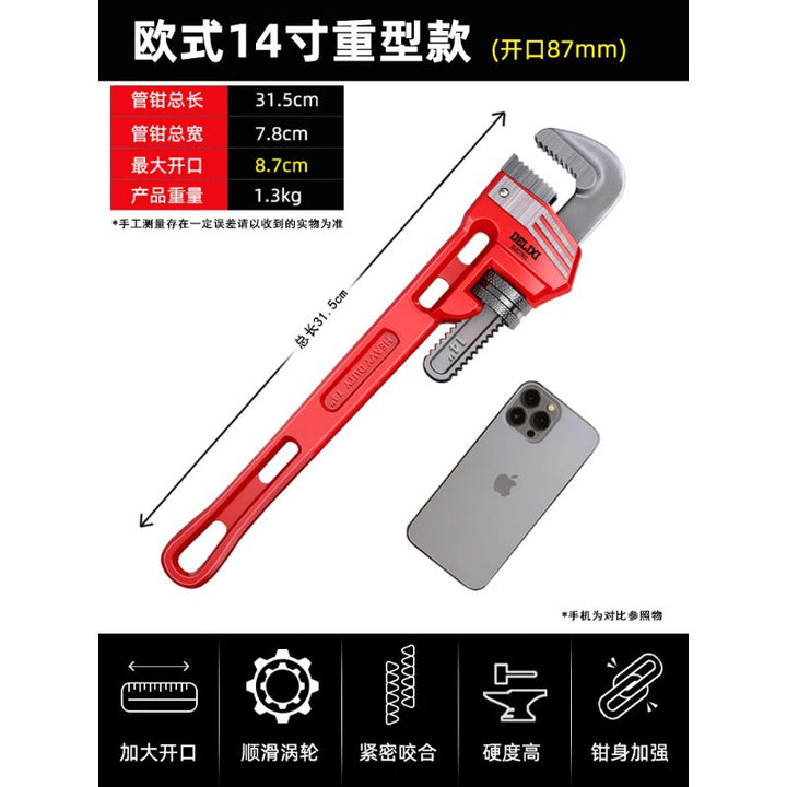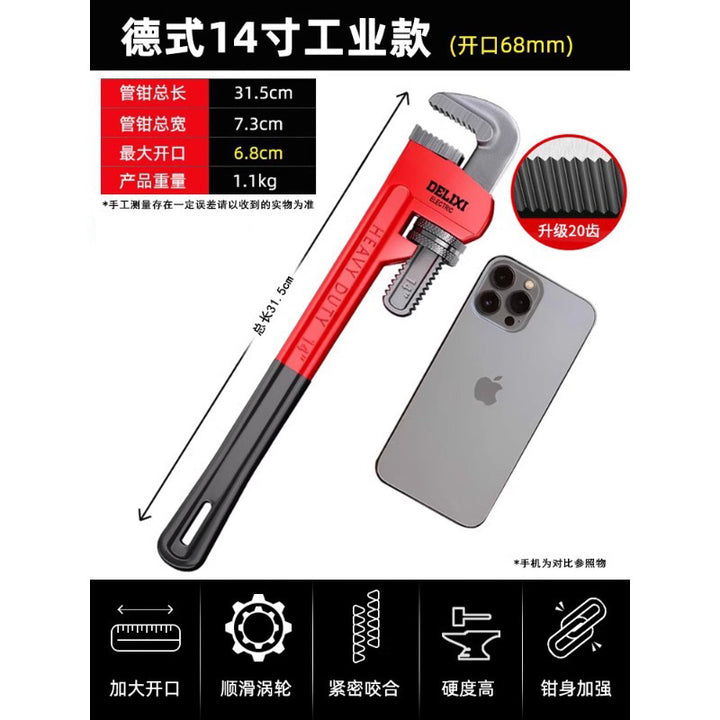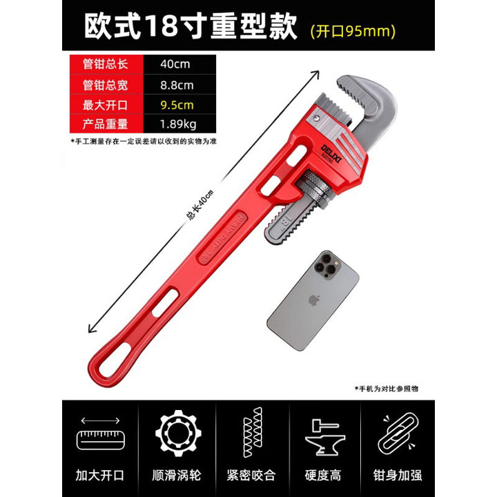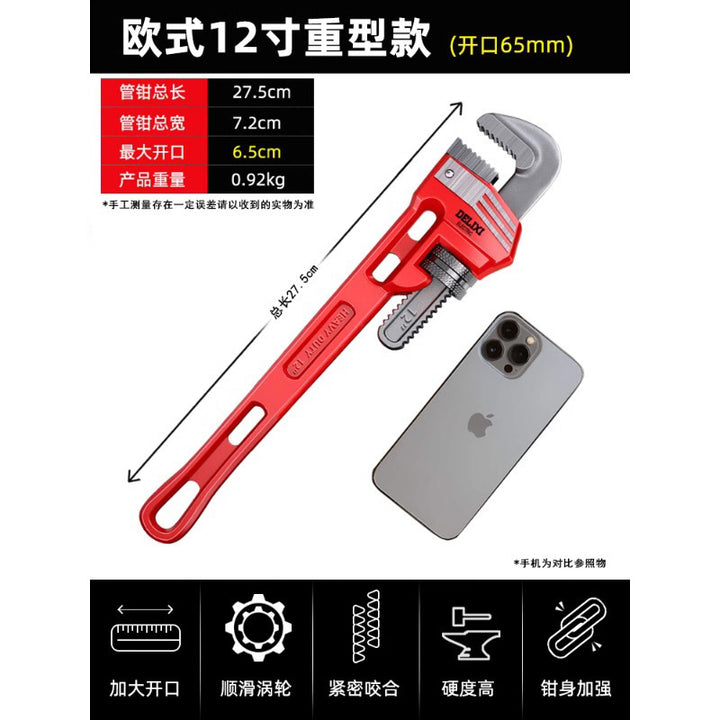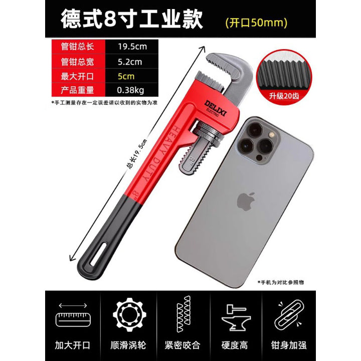 Delixi Electric Heavy Duty Pipe Clamp Wrench Multifunctional Household Large Diameter Water Pump Clamp Maintenance Universal Pipe Clamp
