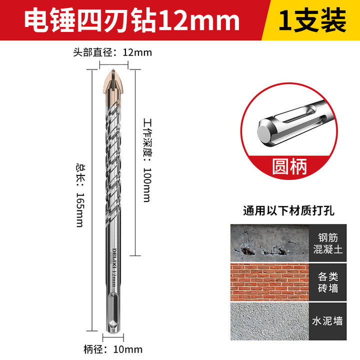 Delixi Electric Impact Drill Bit Electric Hammer Concrete Through Wall Round Shank Over Wall Turn Four Pit Alloy Extended Four Blade Drill