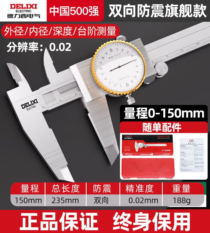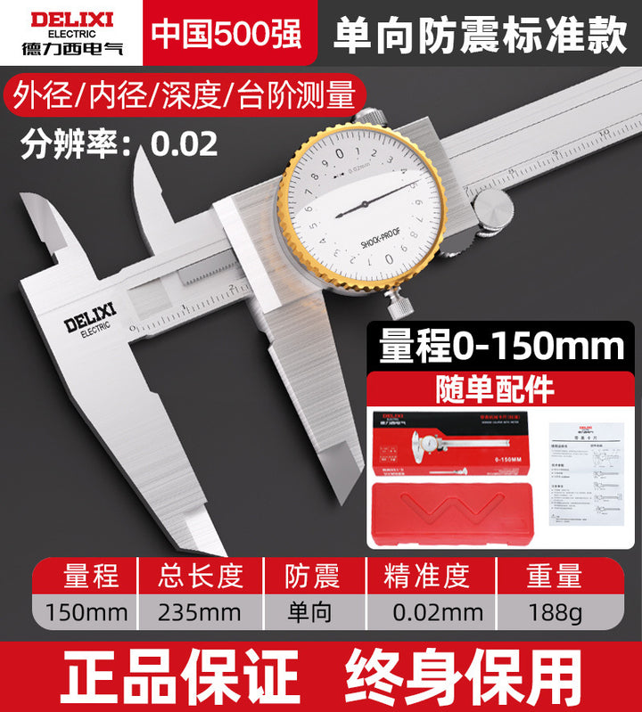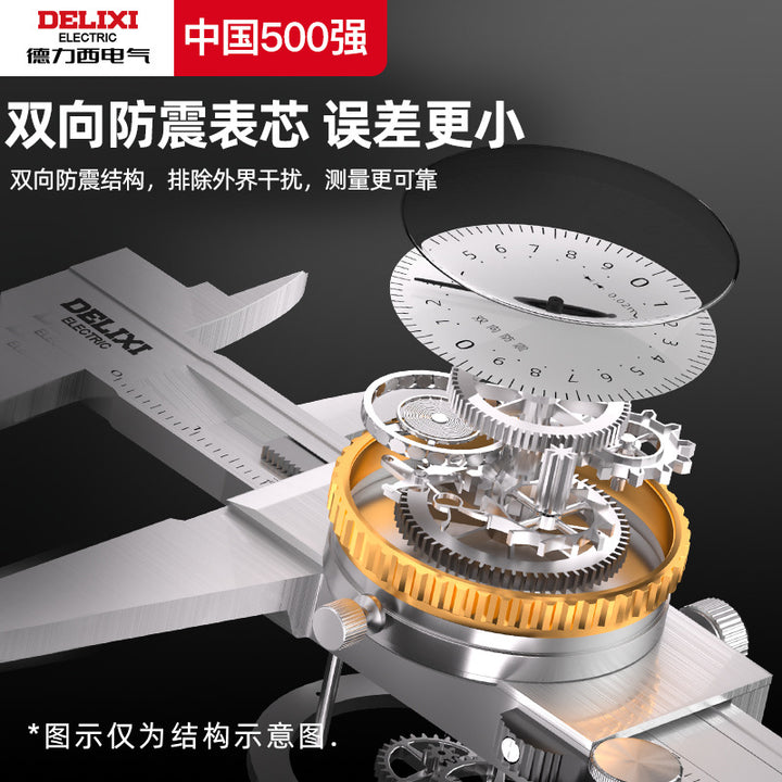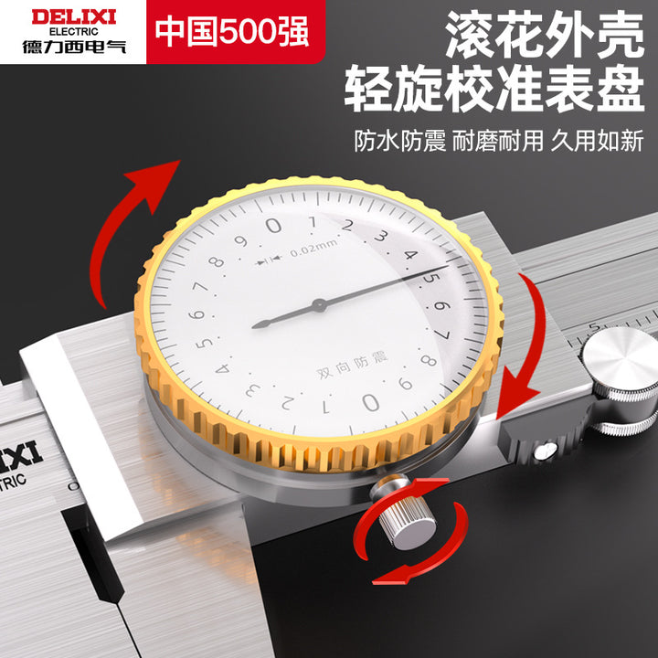 Delixi Electric with meter caliper High precision 0-300mm two-way shockproof roller type stainless steel vernier caliper