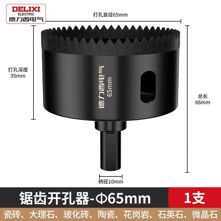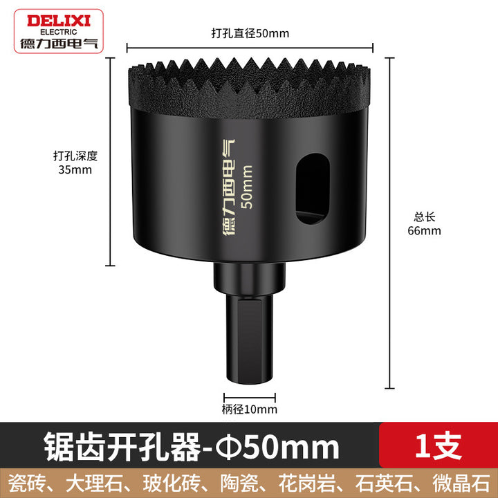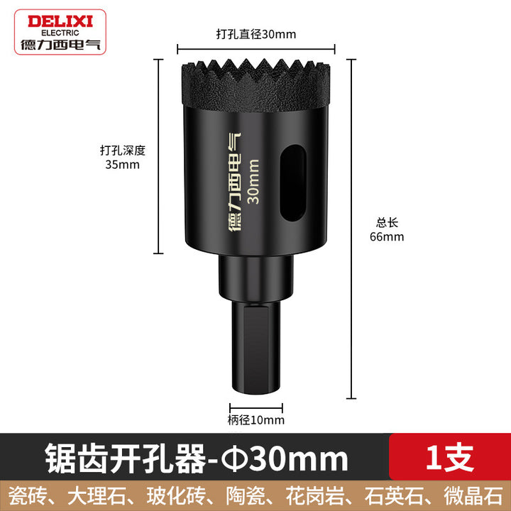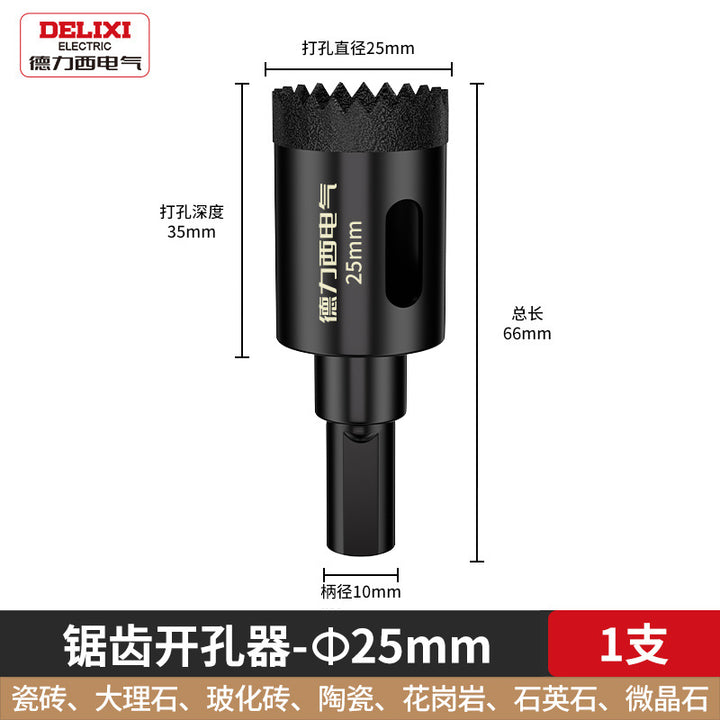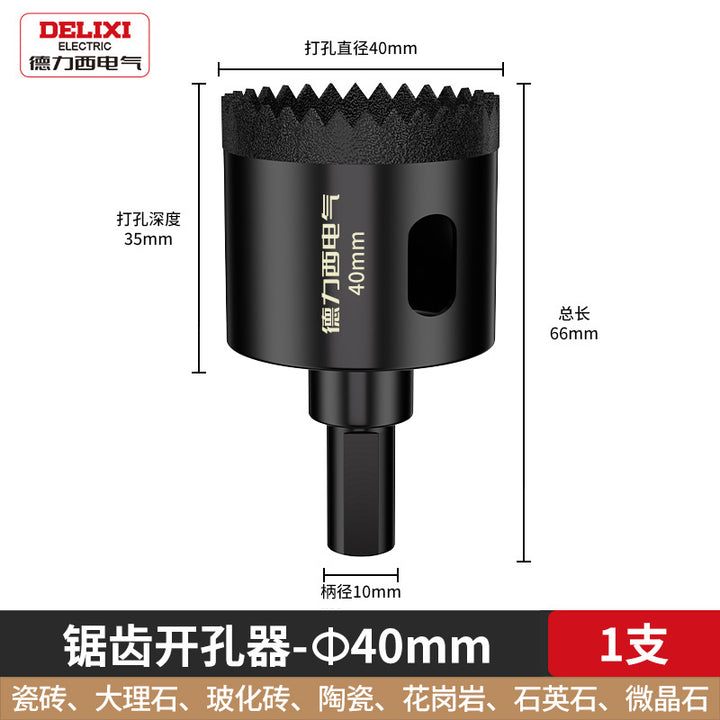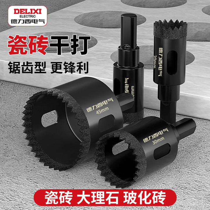 Delixi full tile hole opener sawtooth electric drill glass opening punching drill bit marble drilling dry punching special