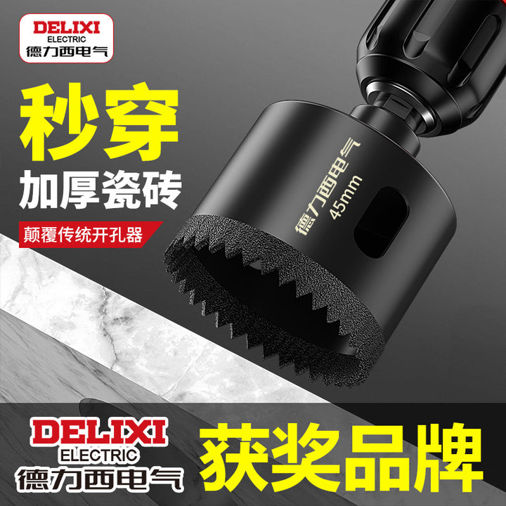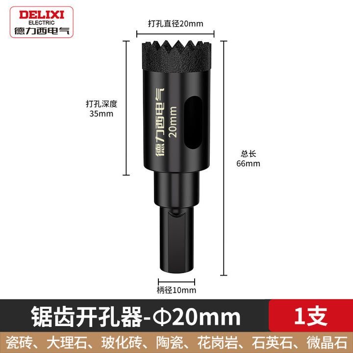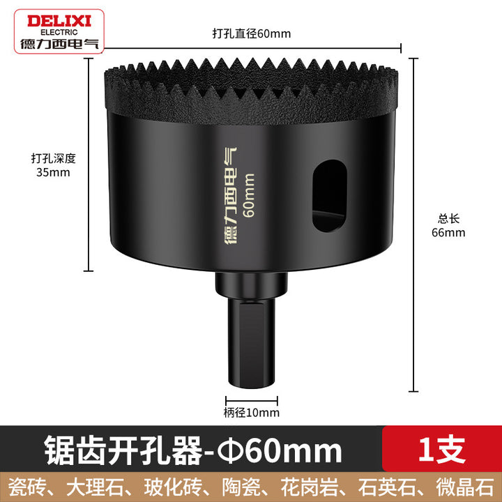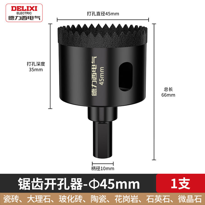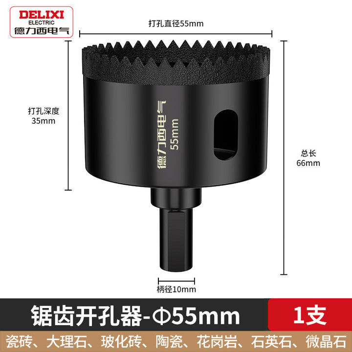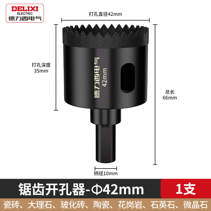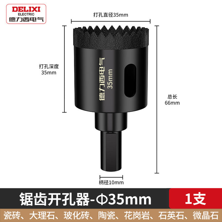 Delixi full tile hole opener sawtooth electric drill glass opening punching drill bit marble drilling dry punching special