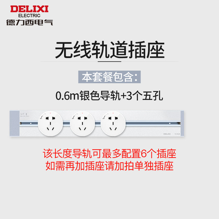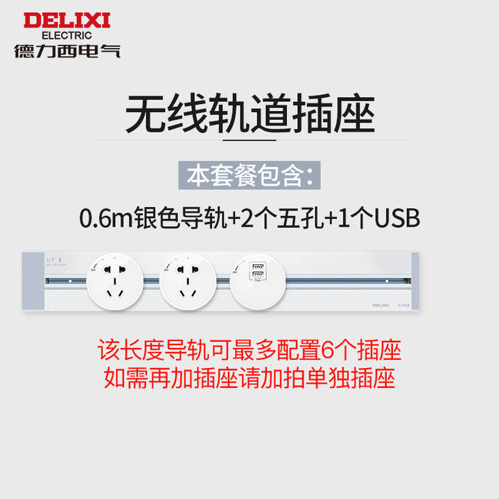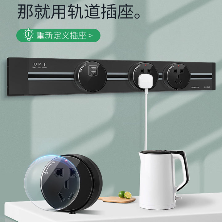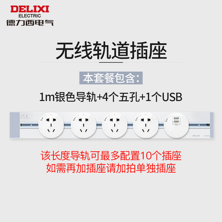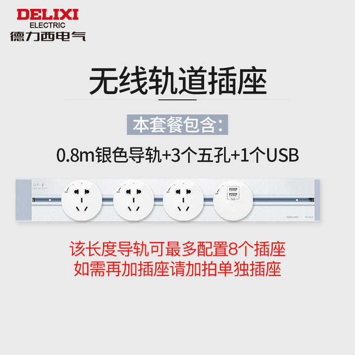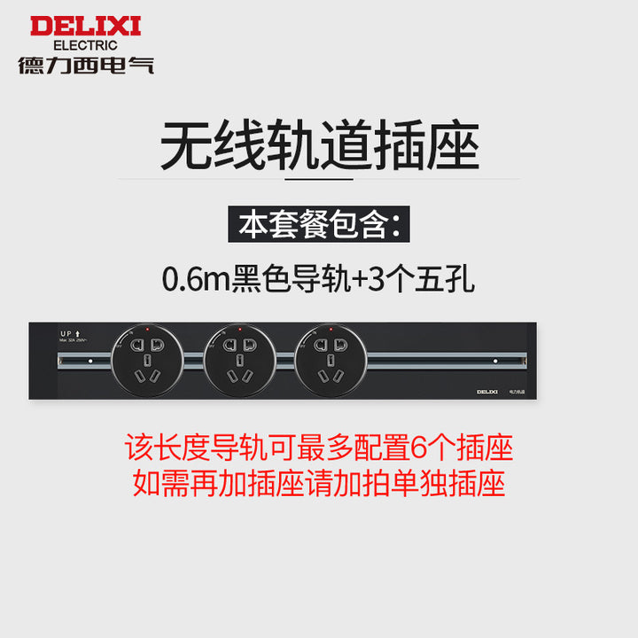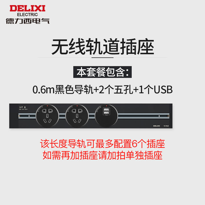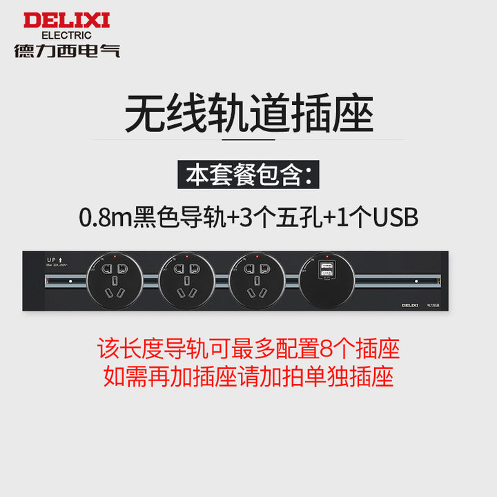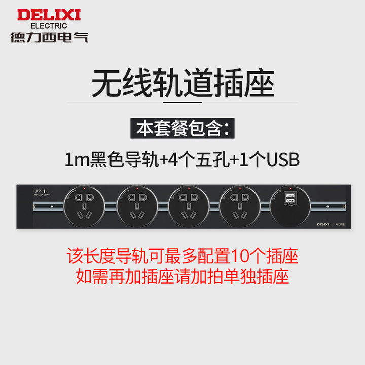 Delixi movable power track socket slide rail kitchen office wireless power strip surface mounted glass panel socket