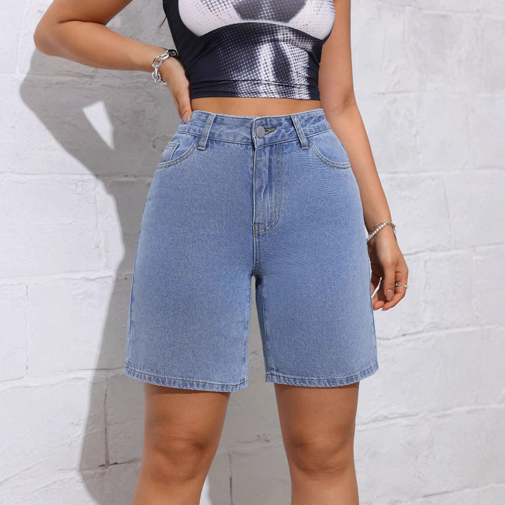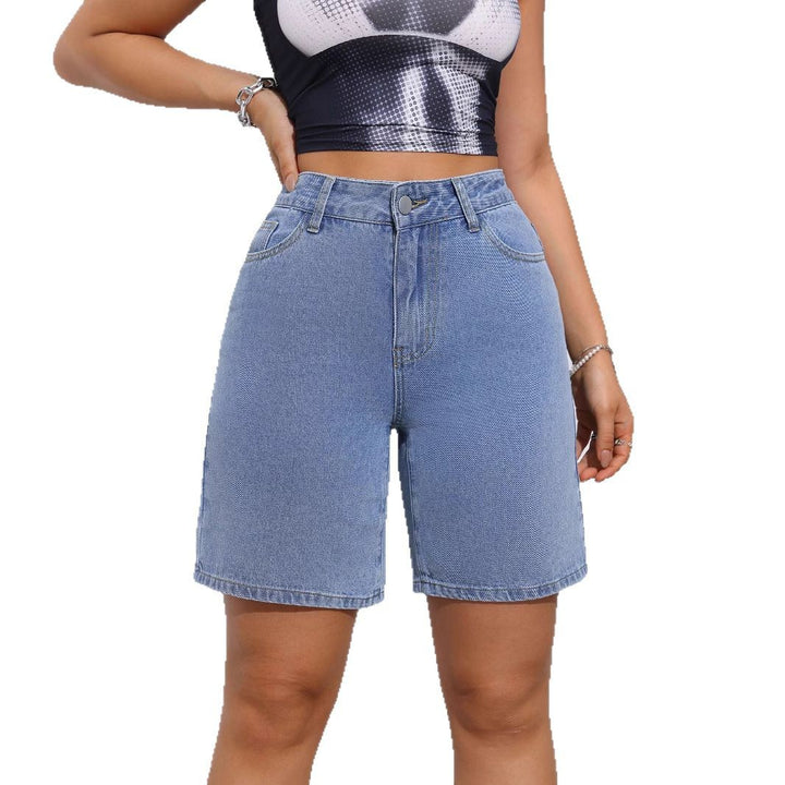 Denim shorts women's 2024 summer new high-waisted straight European and American casual three-point pants pants