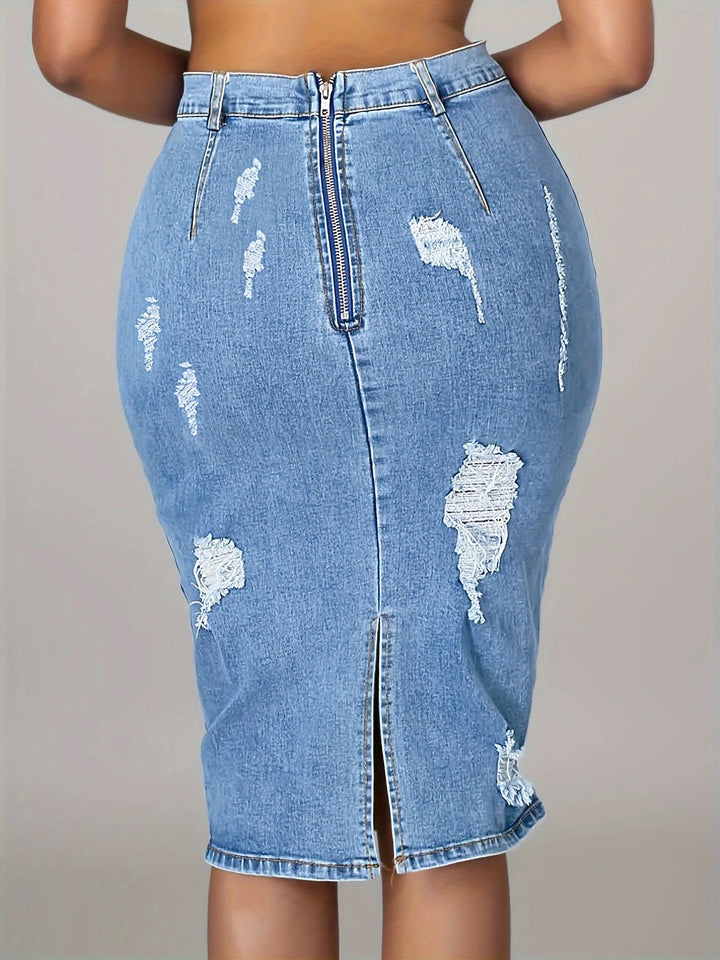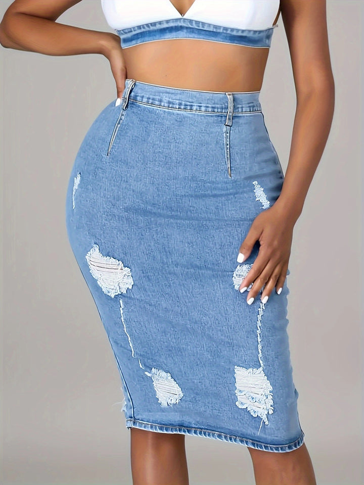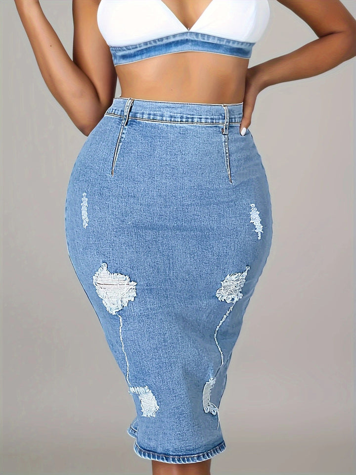 Denim skirt women's European and American , summer thin skirt light-colored hip-wrapped denim skirt