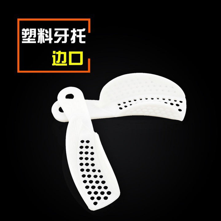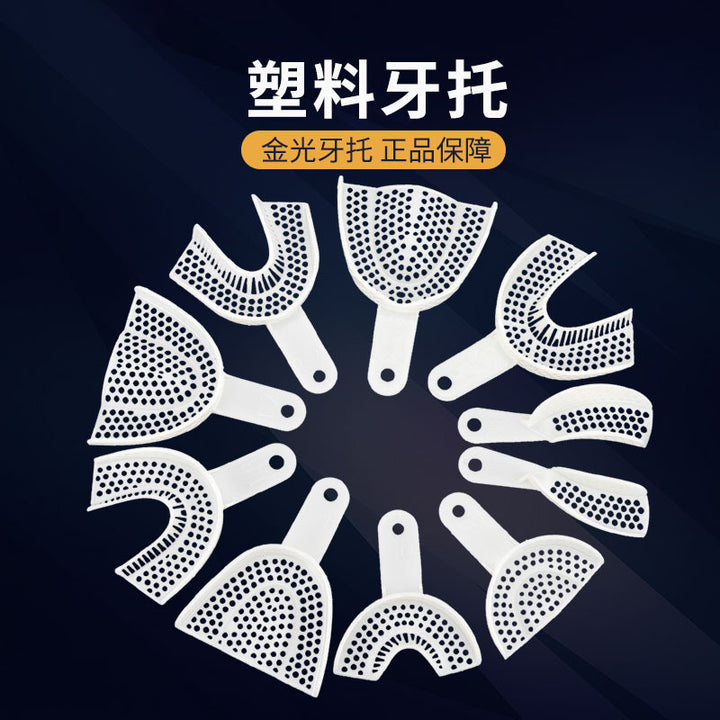 Plastic tooth holder, large, Plastic tooth holder, medium, Plastic tooth holder, small, Plastic tooth holder, front mouth, Plastic tooth holder, edge |