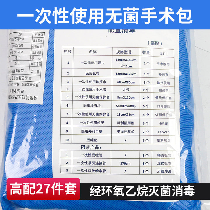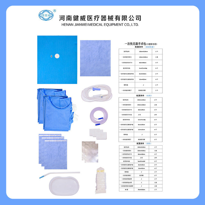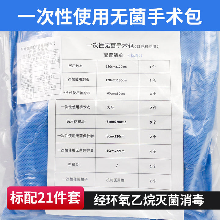 Disposable sterile surgical kit with 18 pieces, Disposable sterile surgical kit comes standard with 21 pieces., Disposable sterile surgical kit with 25 pieces |