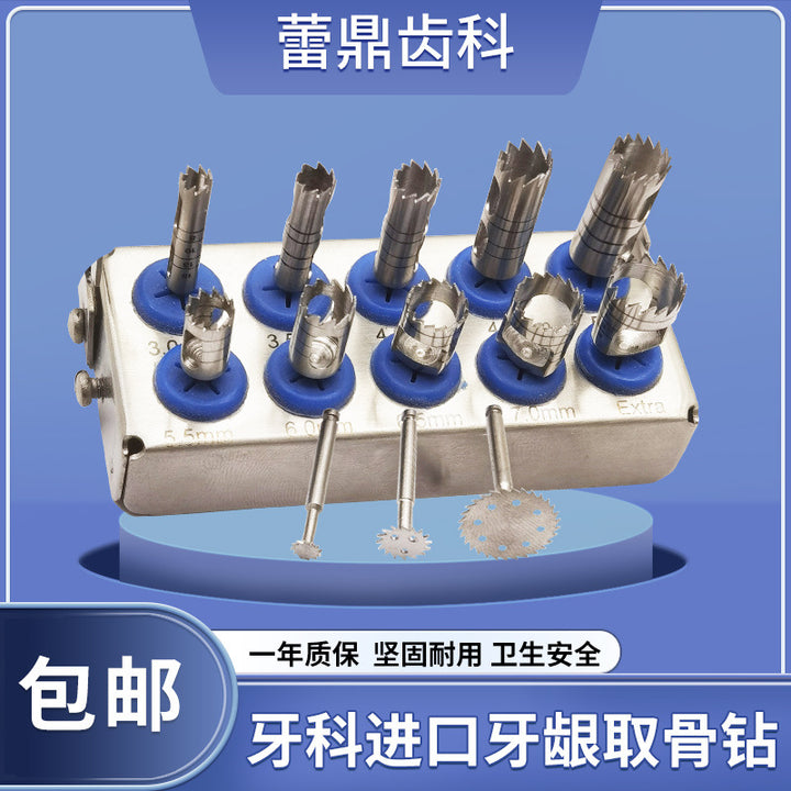 Dental oral implant bone drilling lengthened gingival bone drilling incremental autologous bone extraction quick knife saw blade bone ring drilling