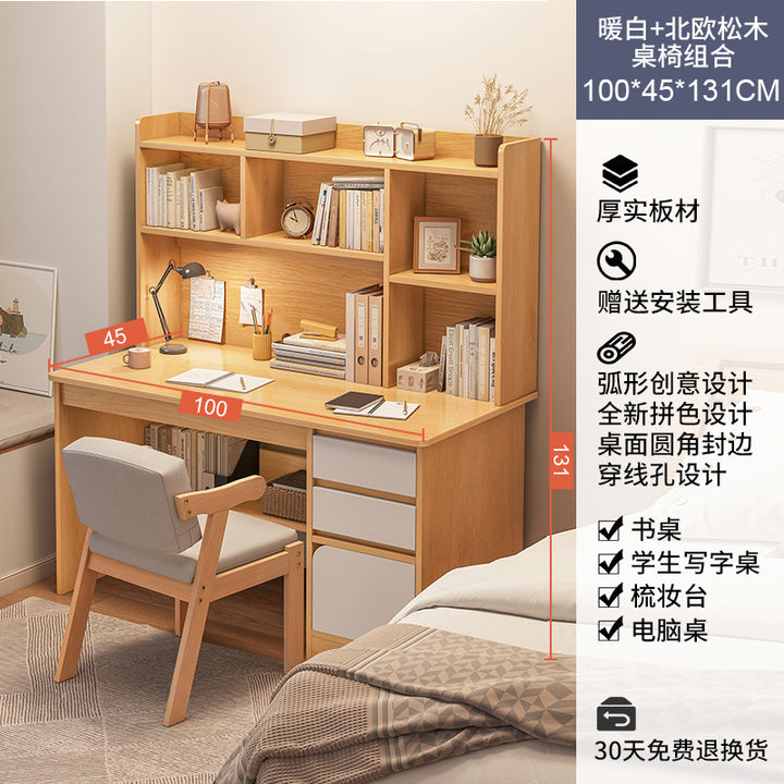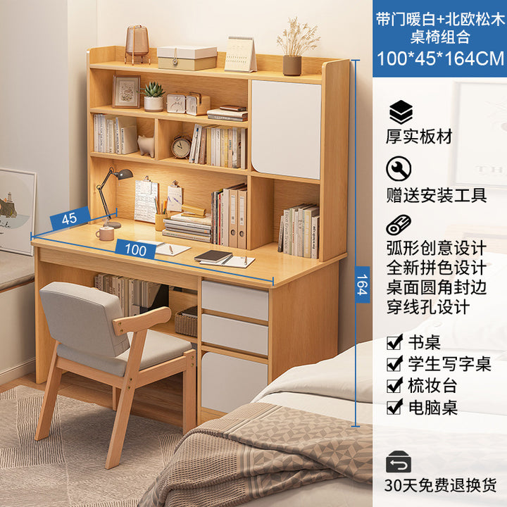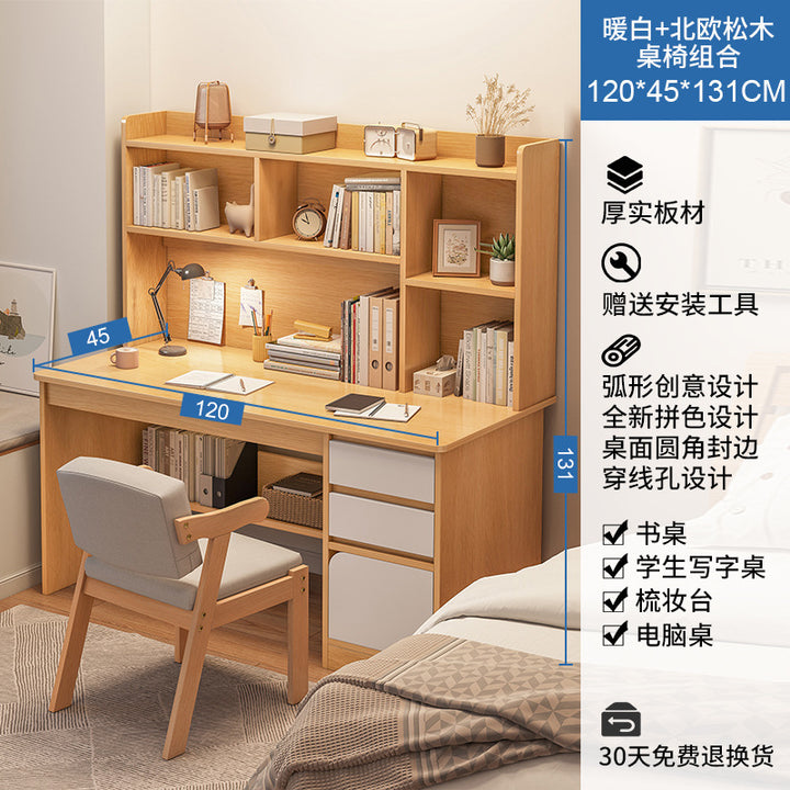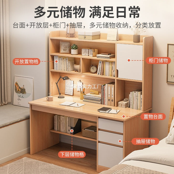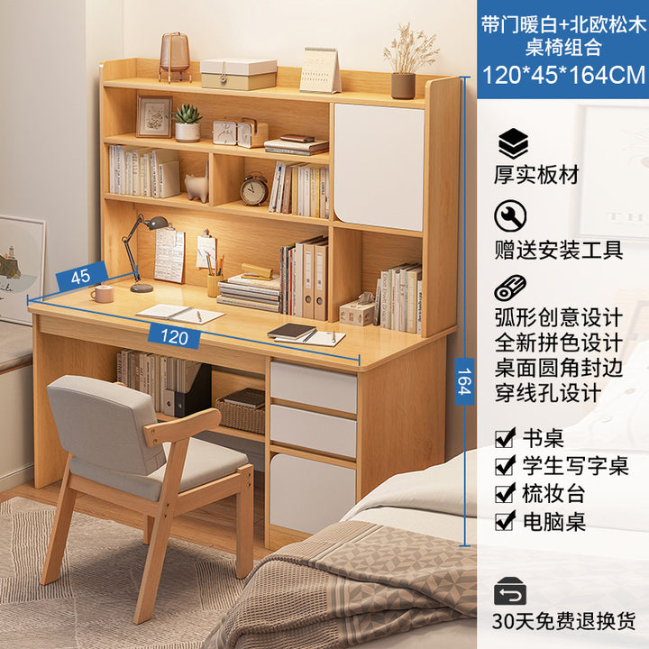 Desk Student Home Bookshelf Bookcase Integrated Computer Desk Junior High School Student Bedroom Homework Desk Learning Writing Desk