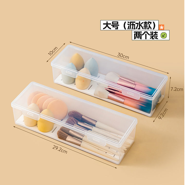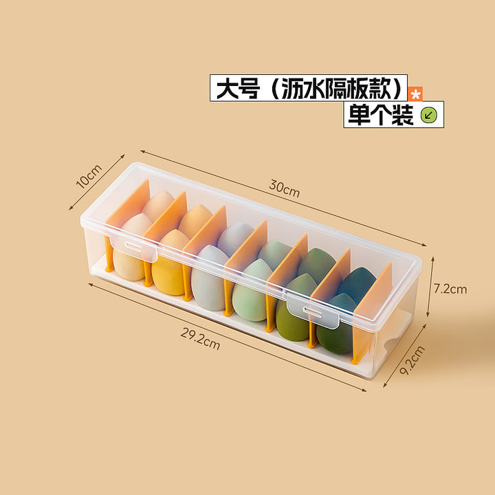 Desktop grid baffle dust lipstick storage box transparent plastic puff makeup brush cosmetic storage box with lid