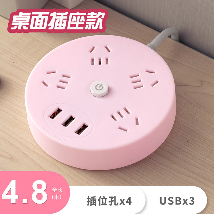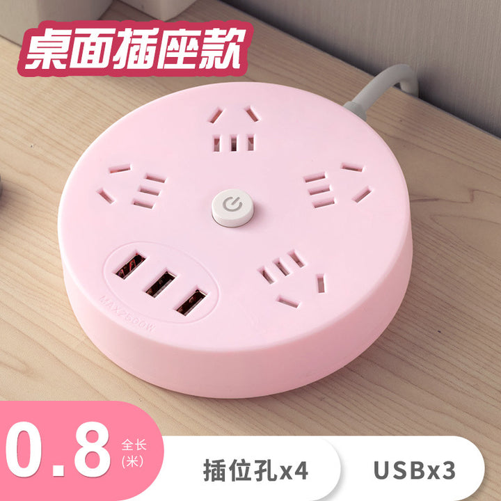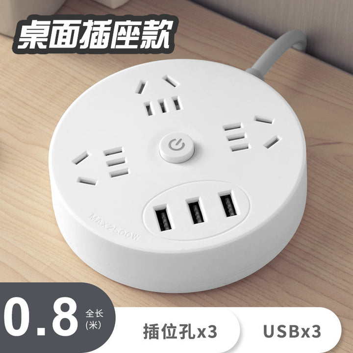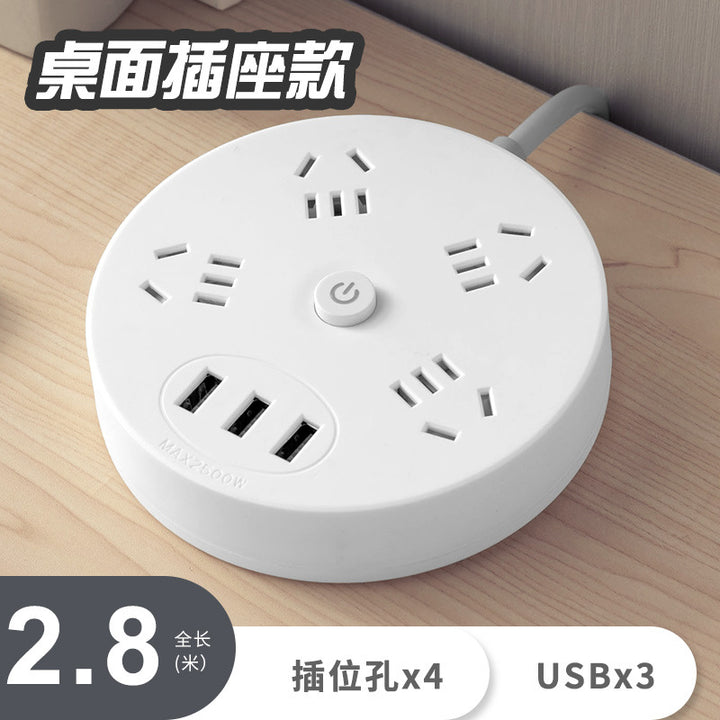 Desktop office plug small, disc with cable usb power strip socket household high power porous patch panel plug board