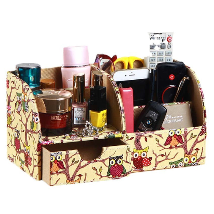 Desktop office storage box Organizer business card box, household with drawer finishing box Creative leather pen holder